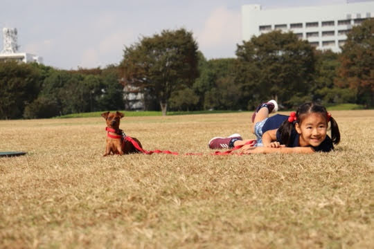 ミニチュアピンシャのアミです。アミは『アミ小さな宇宙人』という素晴らしい本からもらった名前です。アミは大切な家族の一員です。無条件の愛を、私たちに注いでくれています。